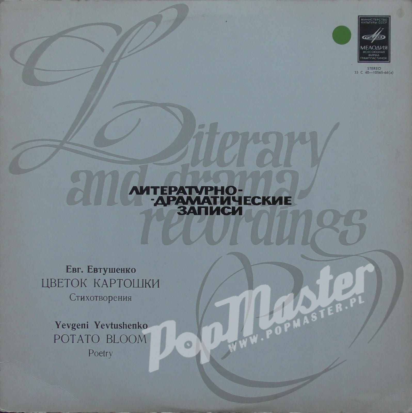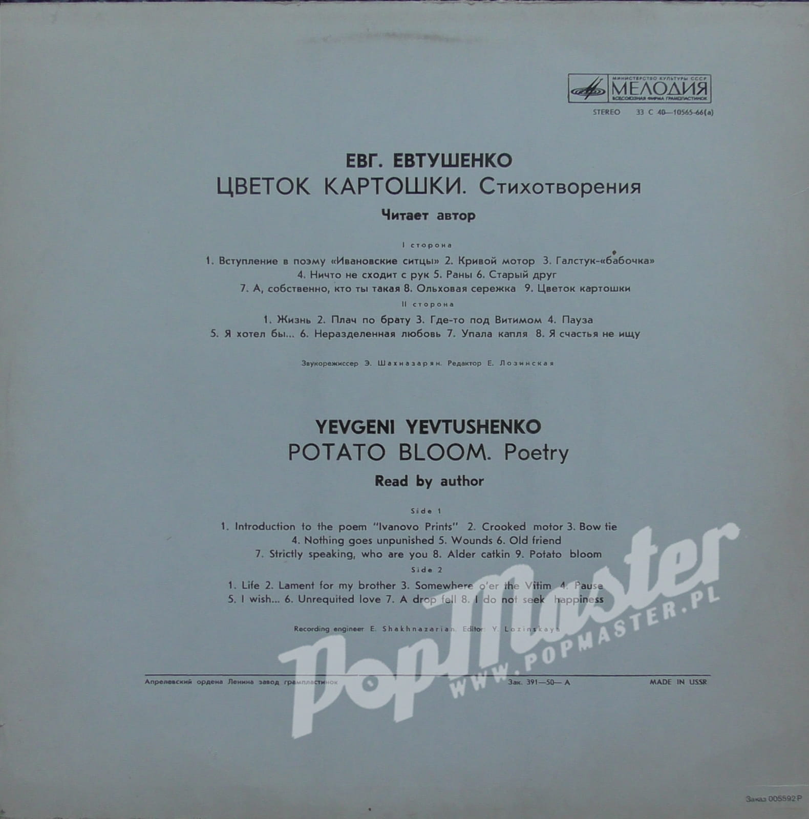 Евгений Евтушенко Цветок Картошки Yevgeny Yevtushenko Potato Bloom Мелодия – 33 С 40–10565-66(a) Poetry Discos de vinilo, disques vinyles, disco de vinil