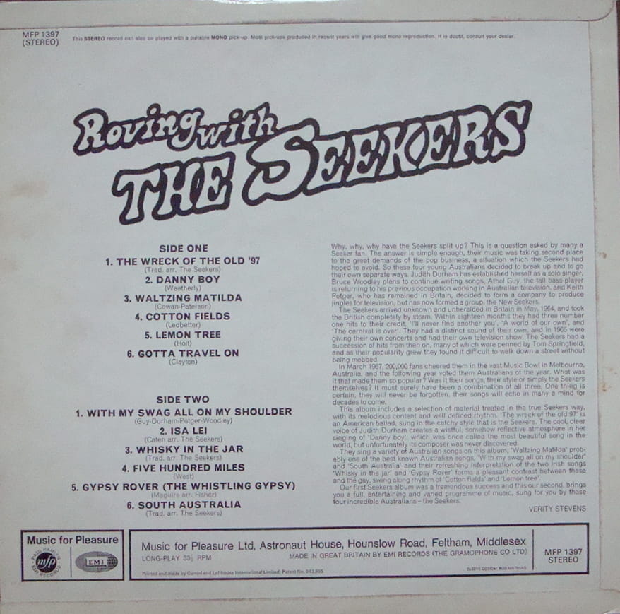 The Seekers - Roving With The Seekers MFP 1397 Stereo