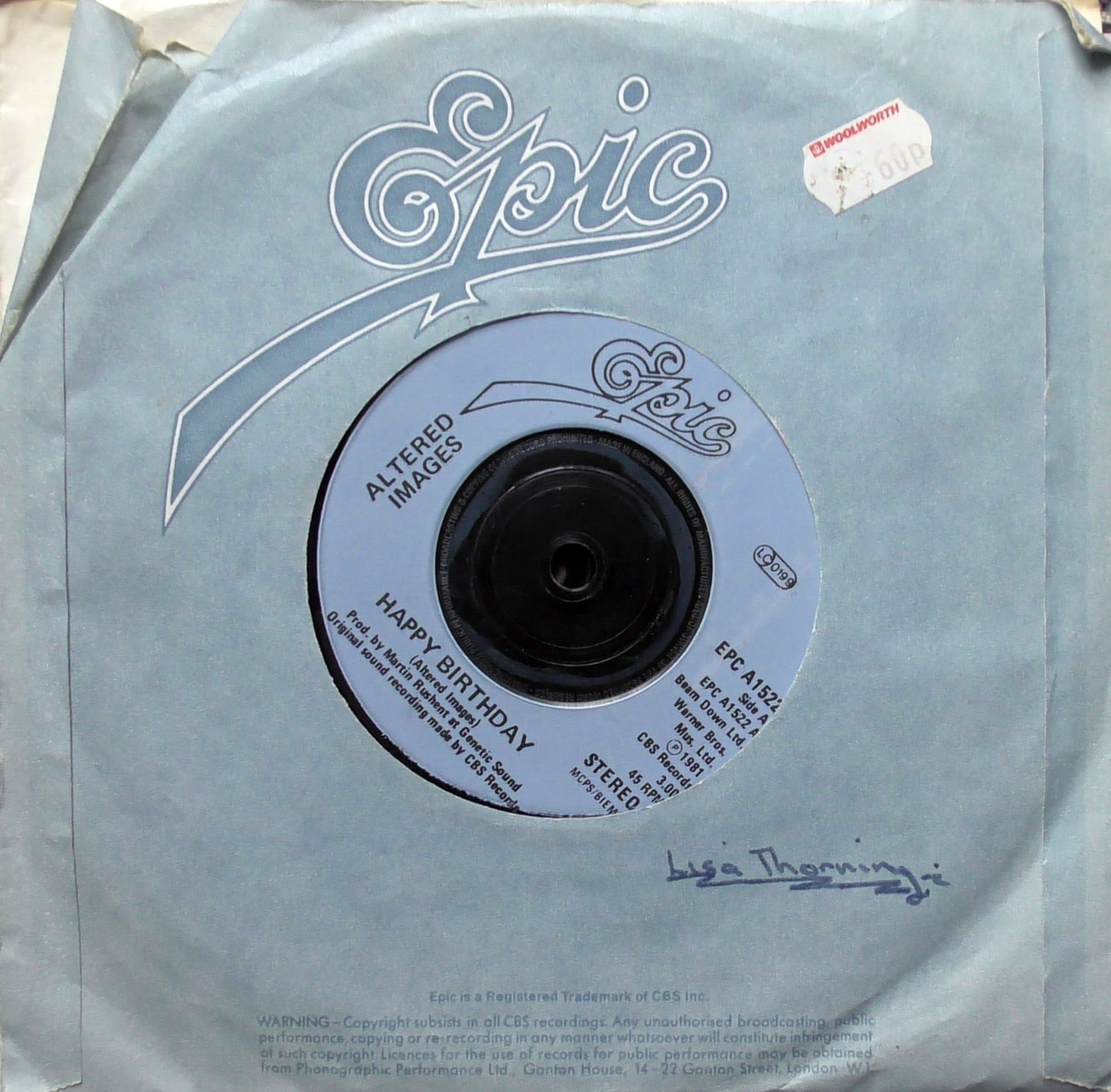Altered Images – Happy Birthday, Płyta Winylowa, Epic – EPC A1522, Vinyl, 7", 45 RPM, Single, Stereo