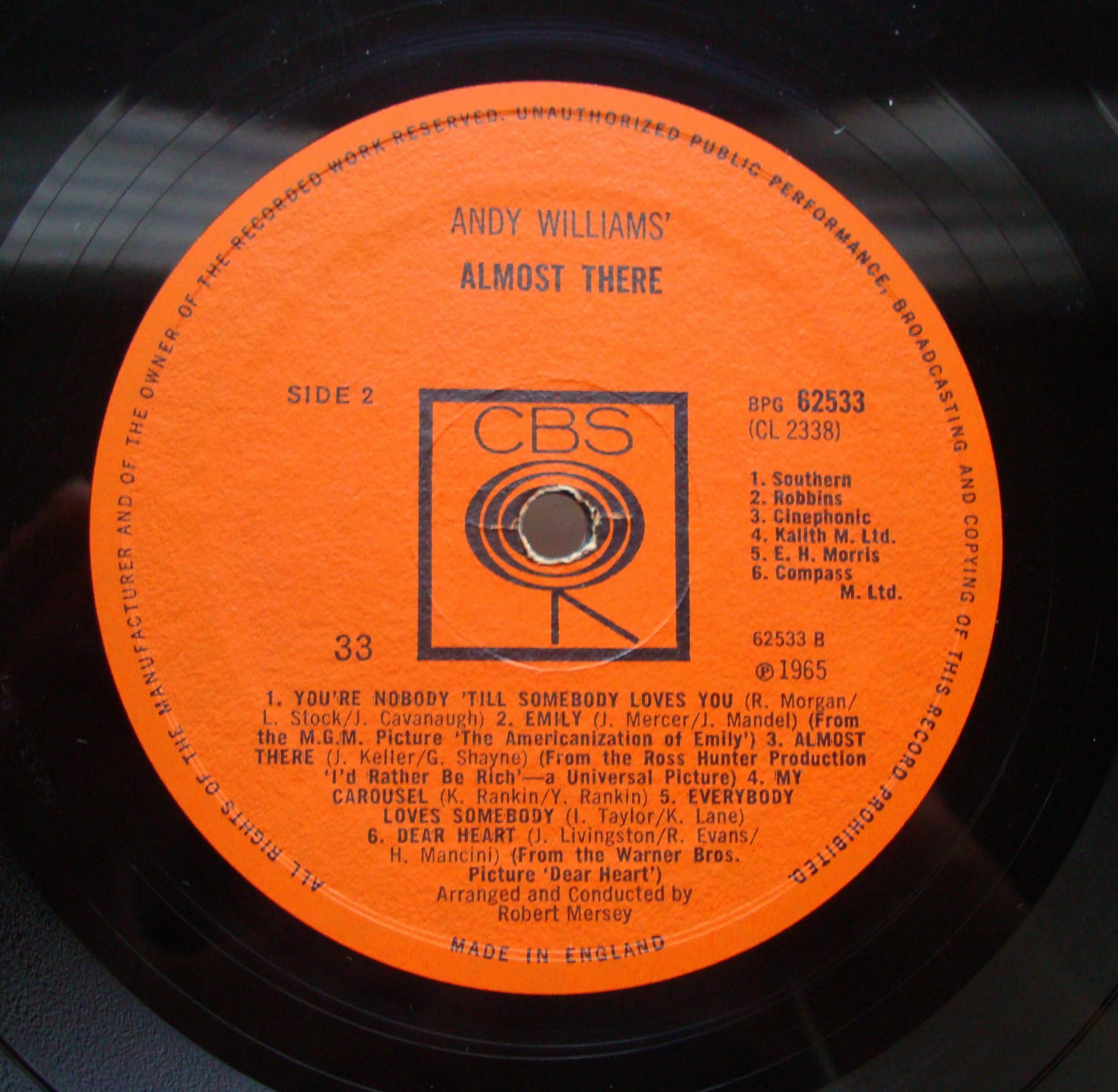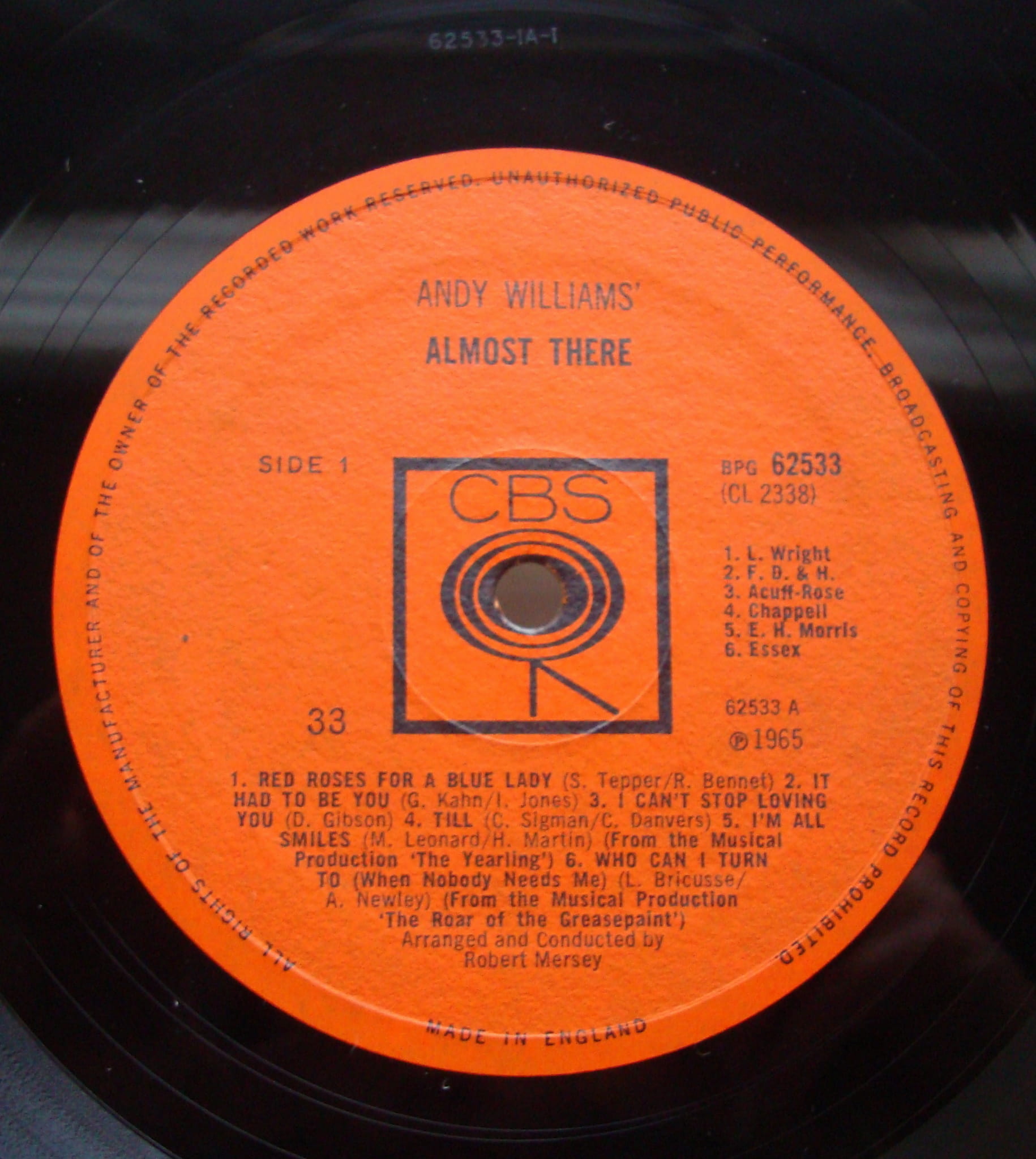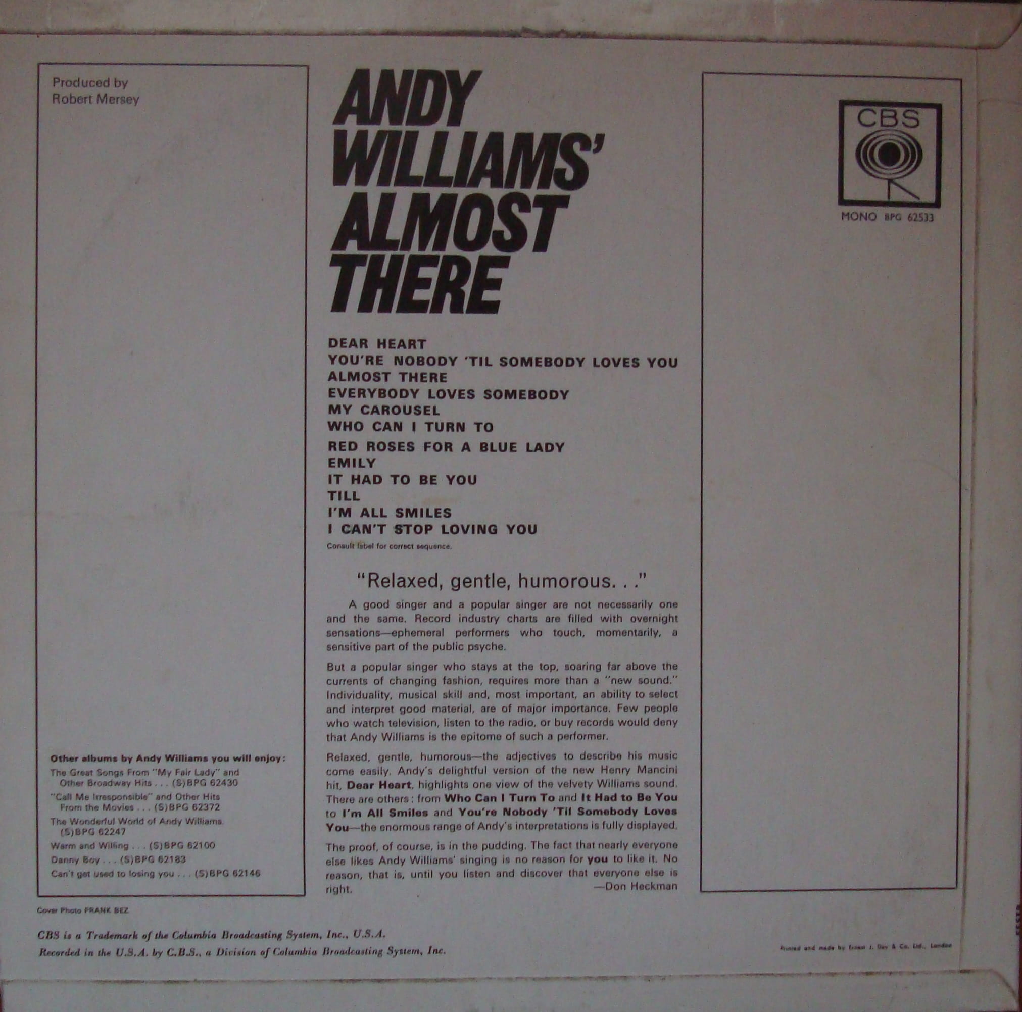 Andy Williams – Almost There BPG 6253 Winyle Pop Easy Listening Vinyle