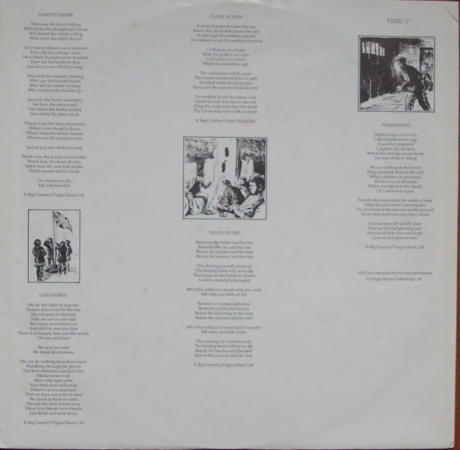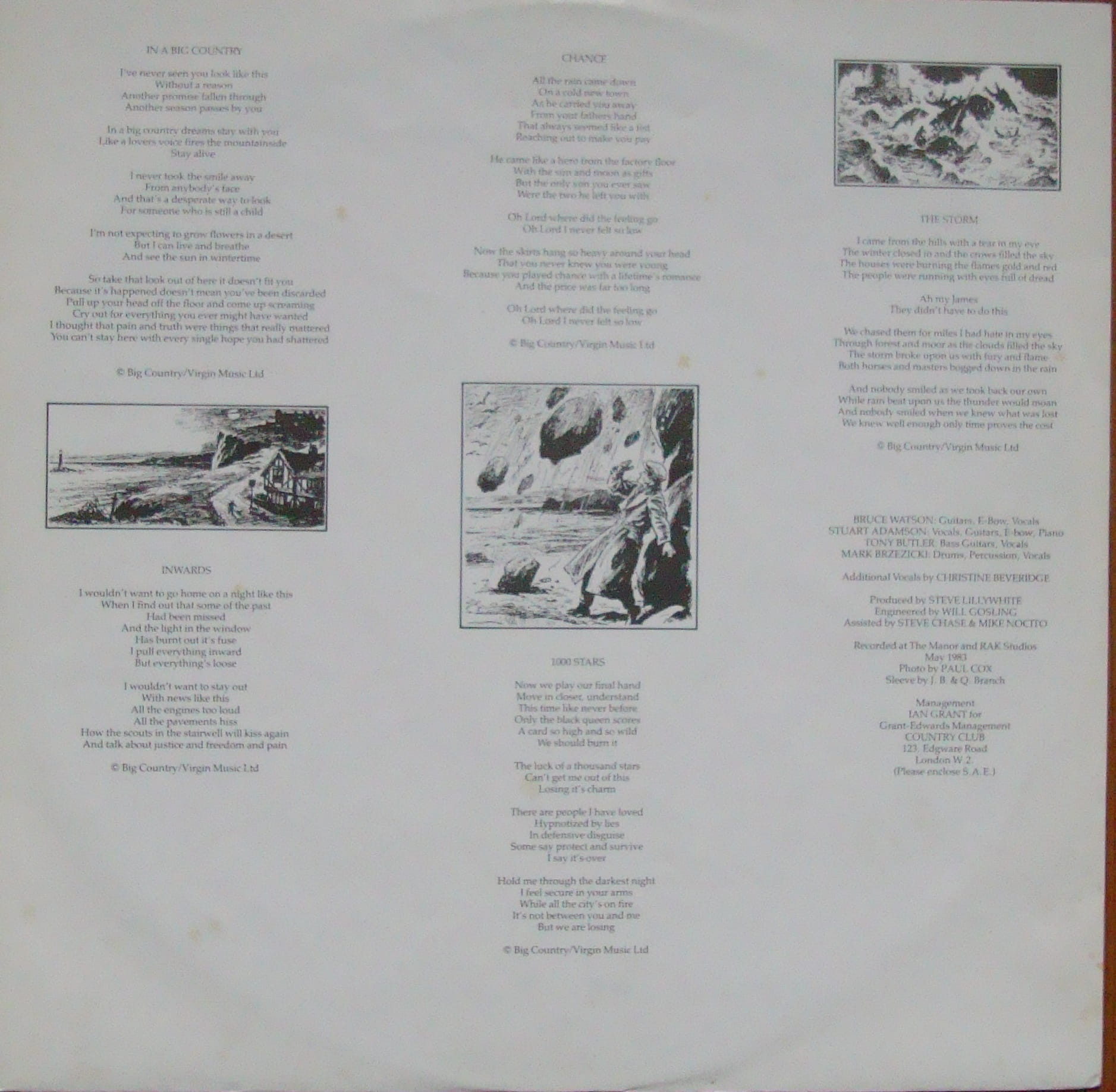 Side One 1 In A Big Country 2 Inwards 3 Chance 4 1000 Stars 5 The Storm Side Two 1 Harvest Home 2 Lost Patrol 3 Close Action 4 Fields Of Fire 5 Porrohman