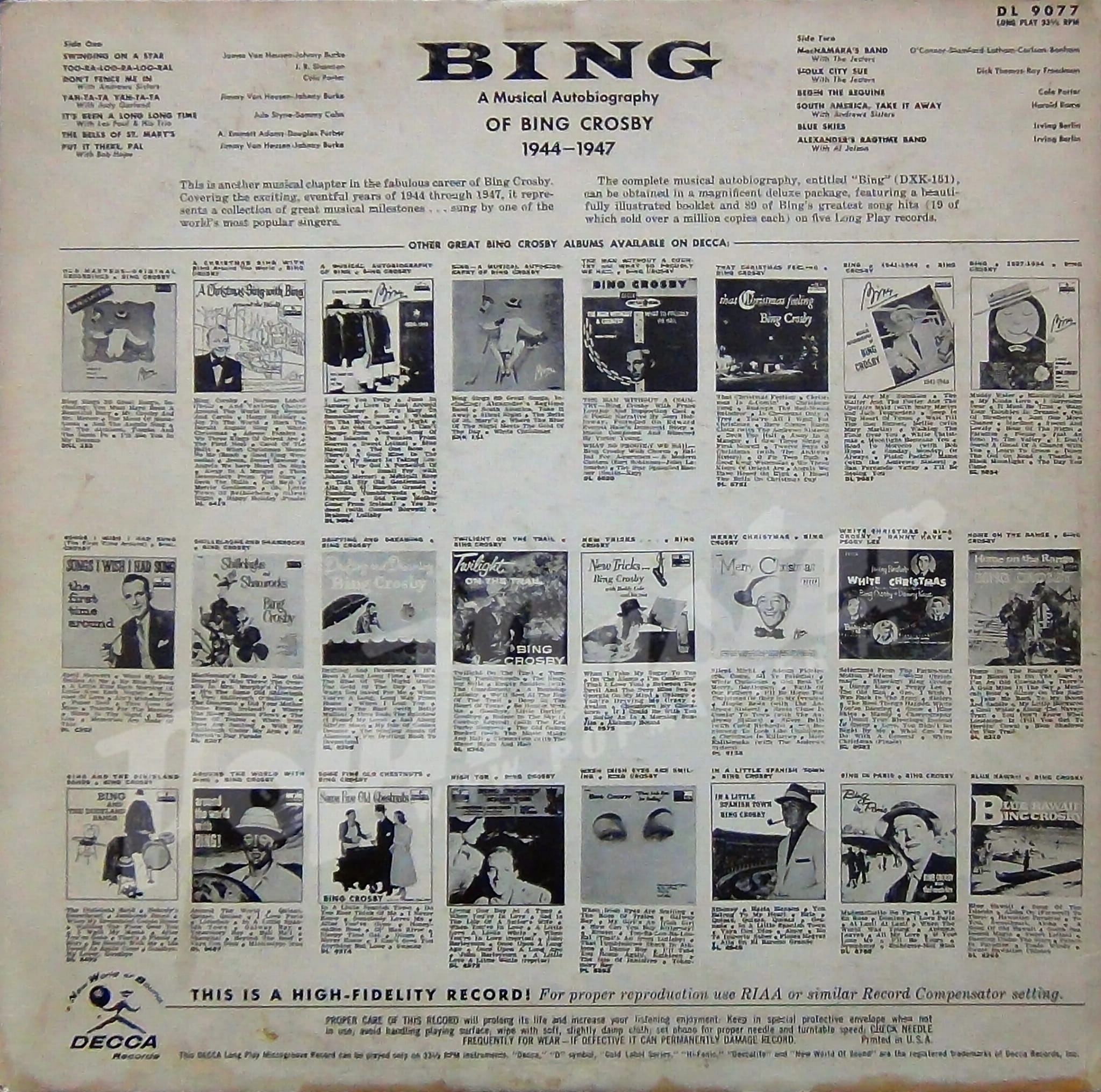 Bing Crosby A Musical Biography 1944-1947 DL 9077