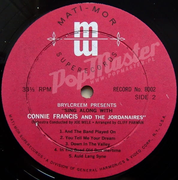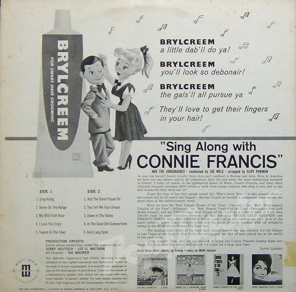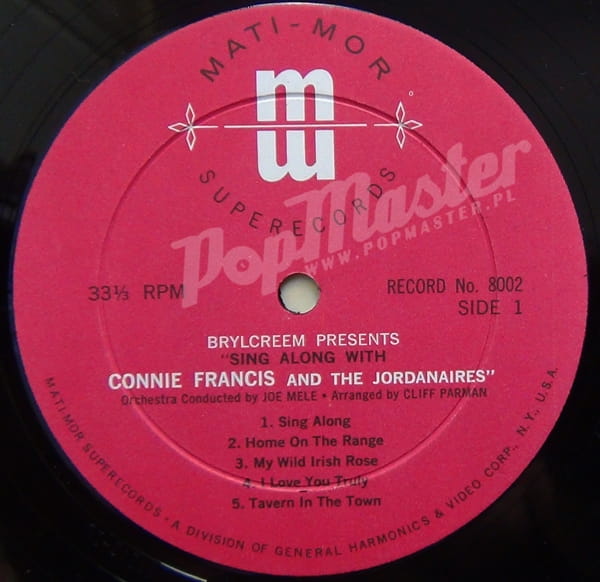 Connie Francis Sing Along With Connie Francis And The Jordanaires Mati-Mor 8002