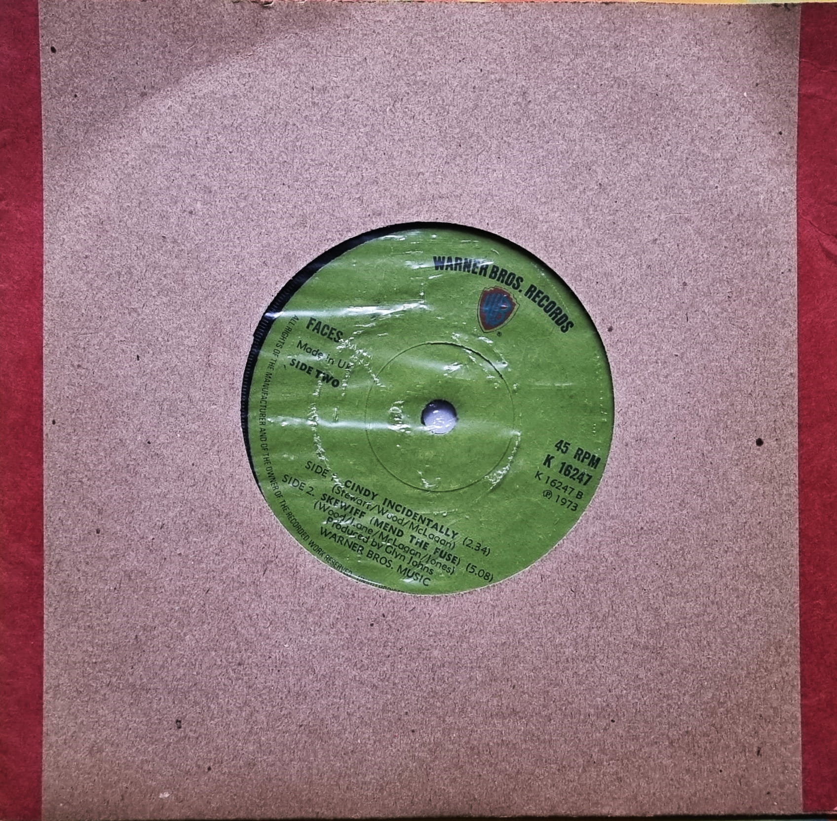 Faces – Cindy Incidentally Warner Bros. Records – K 16247