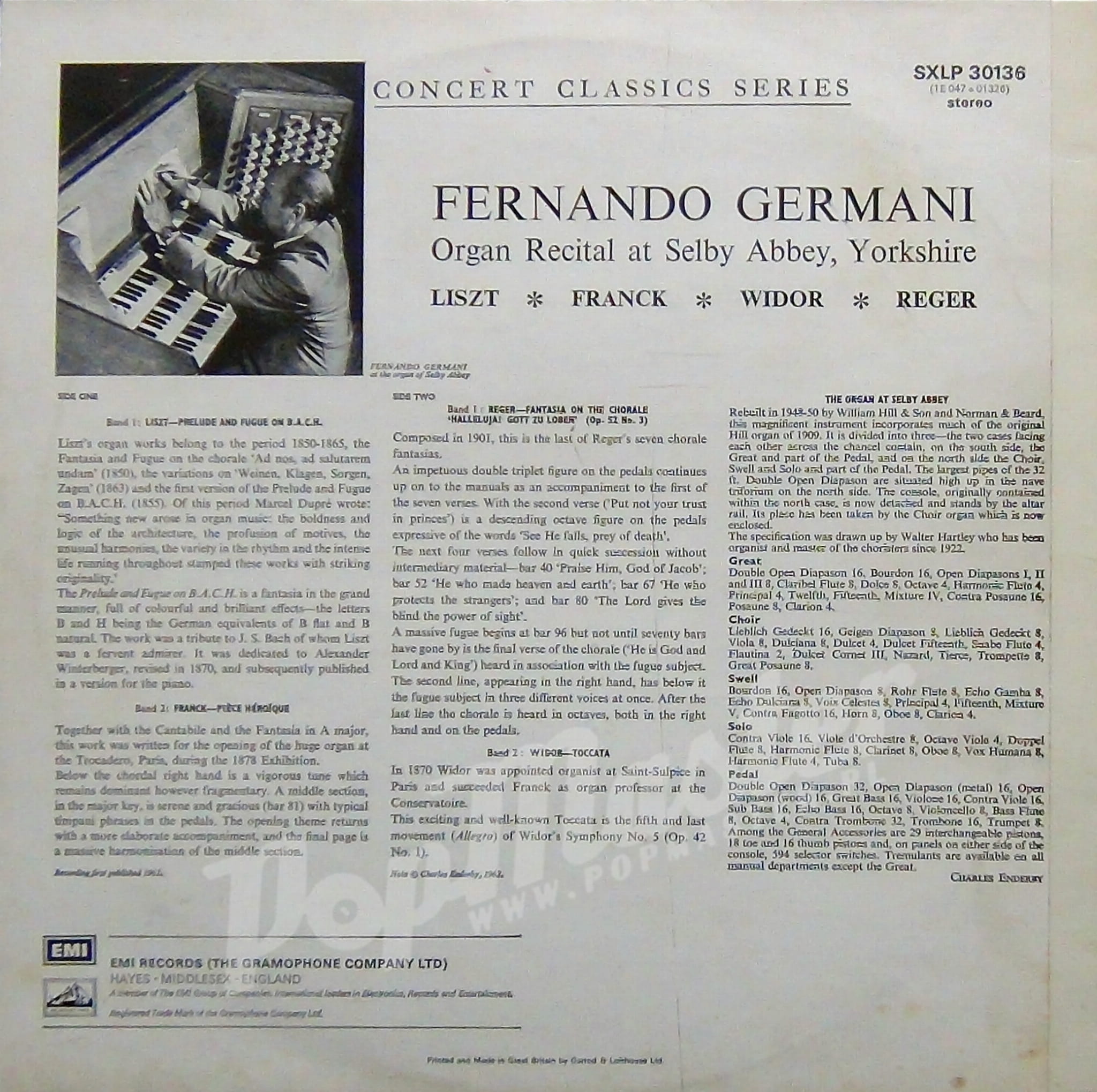 Fernando Germani at The Organ of Selby Abbey Liszt, Bach, Widor,Reger SXLP 30136