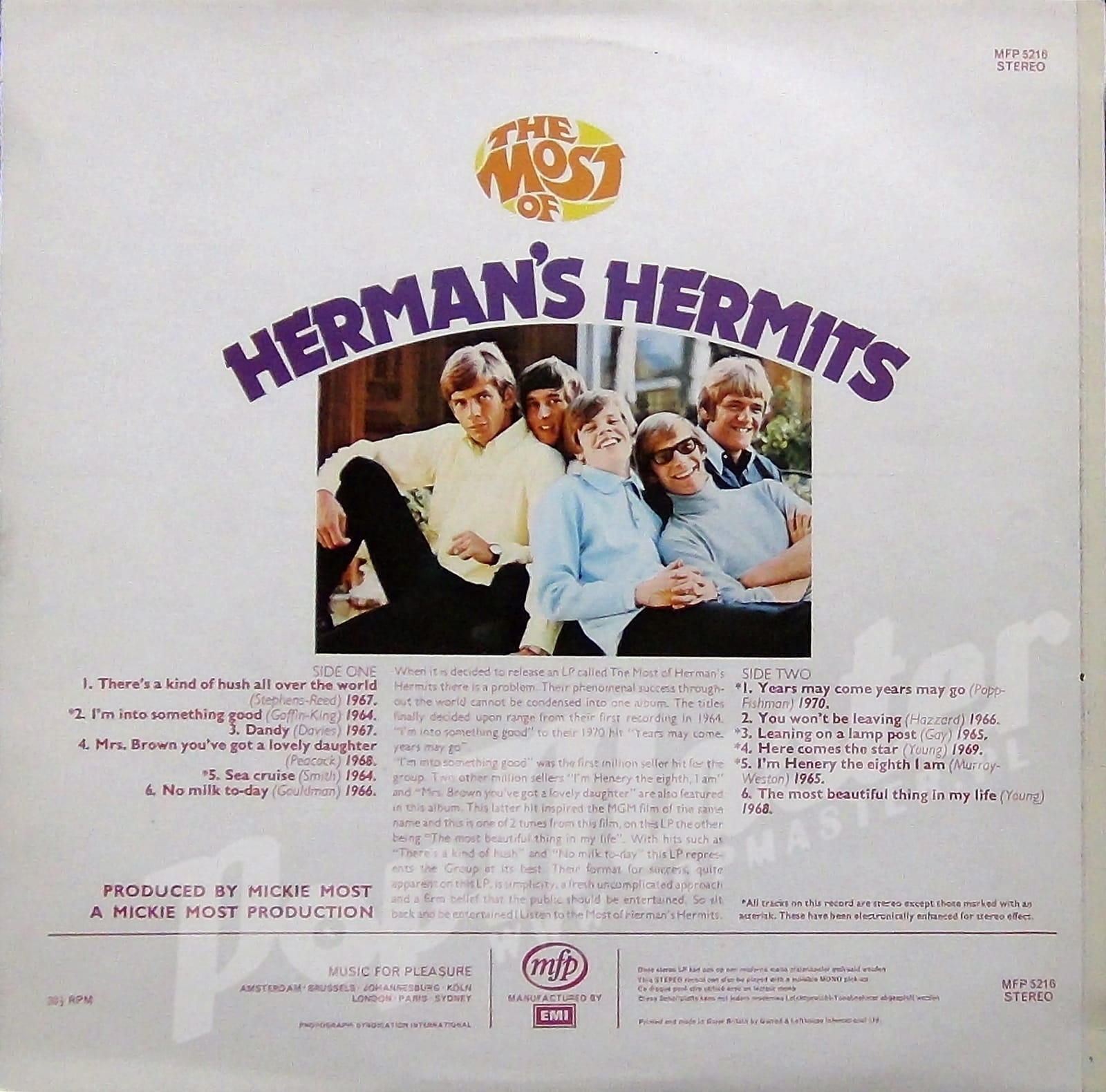 HERMAN'S HERMITS THE MOST OF HERMAN'S HERMITS MFP 5216 STEREO