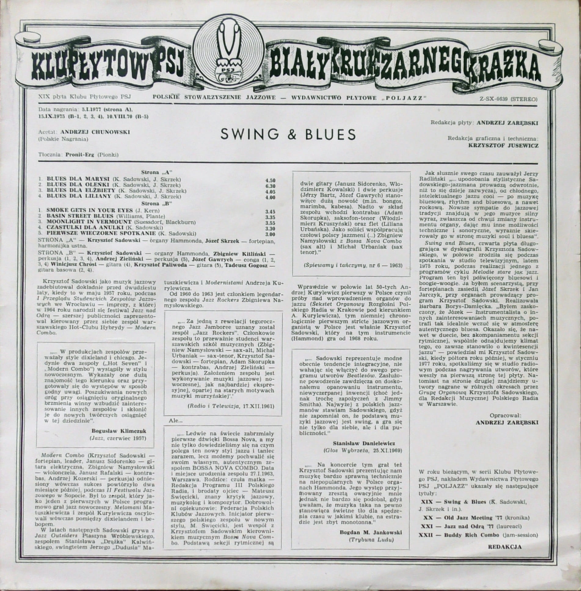 Krzysztof Sadowski – Swing & Blues POLJAZZ – Z-SX 0639