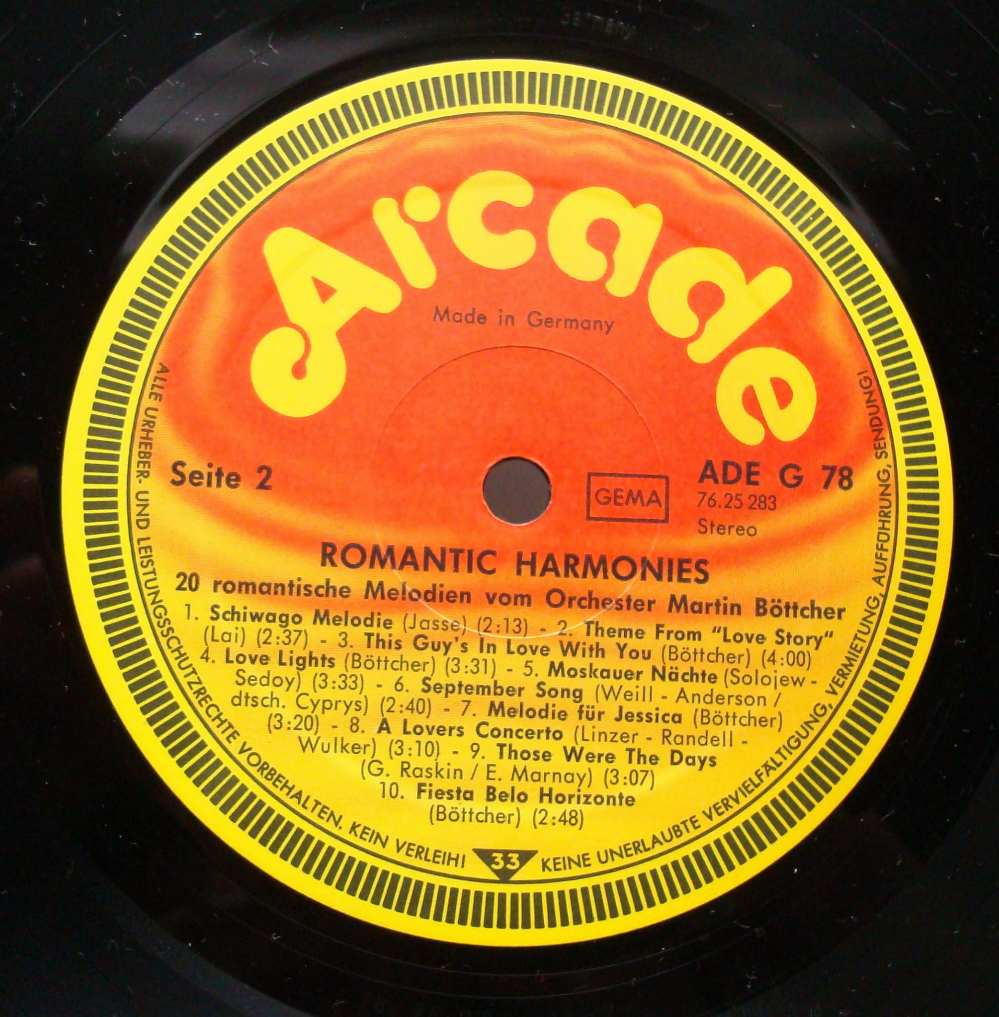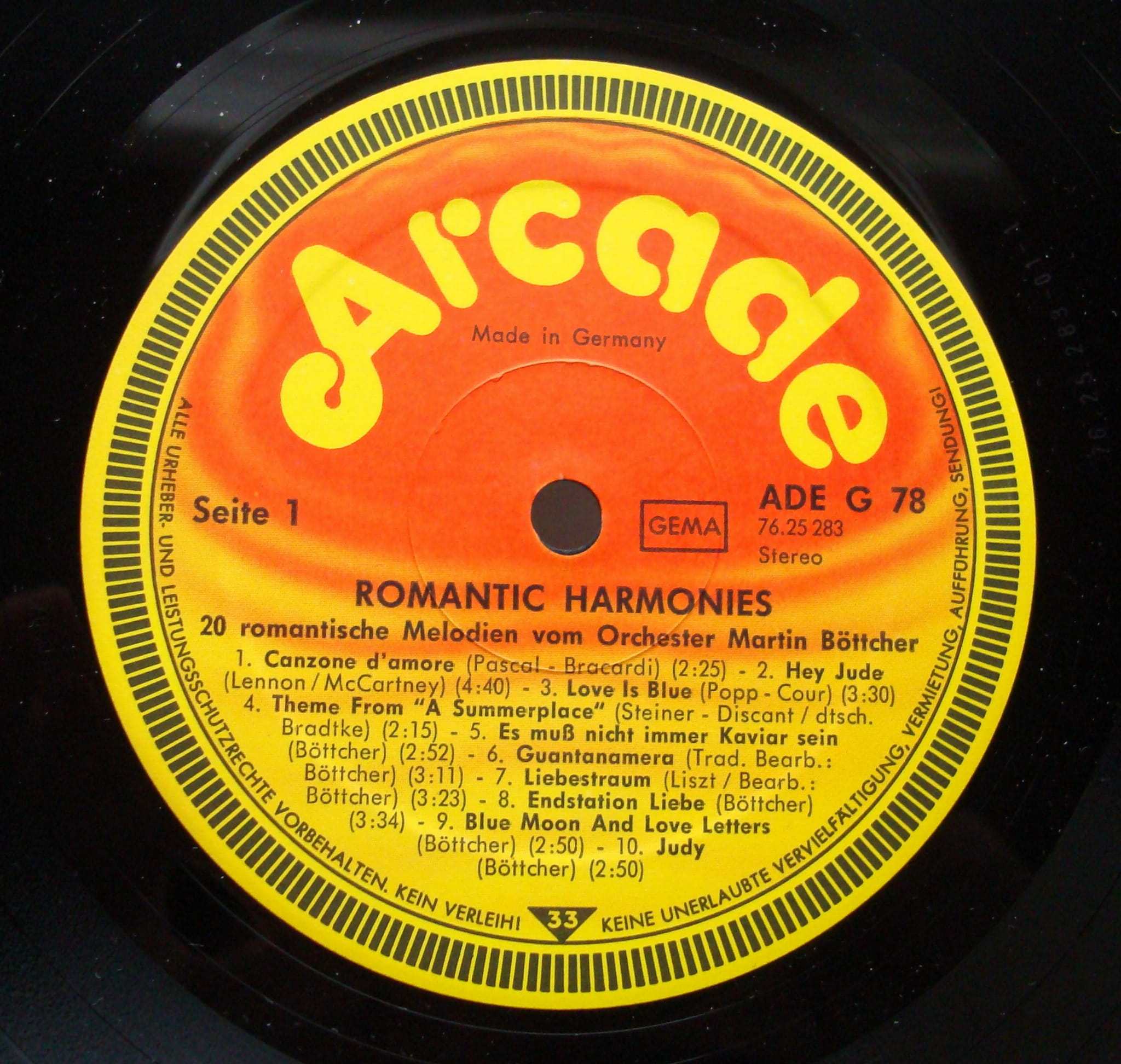 Martin Böttcher (Orchester) Romantic Harmonies 20 romantische Melodien ADE G 78 Vinyl