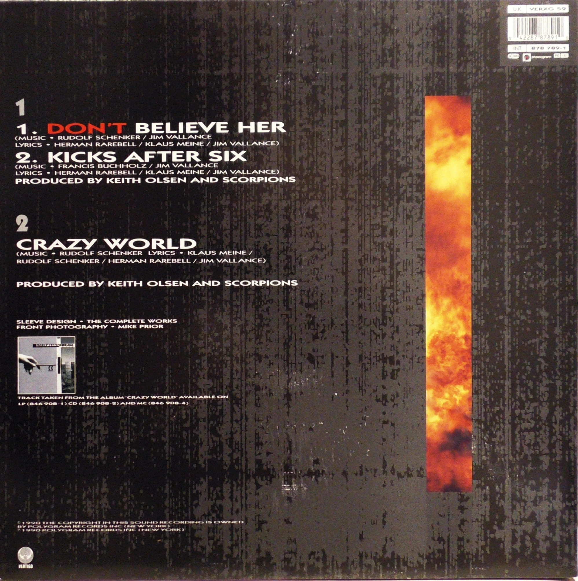 Scorpions – Don't Believe Her (Limited Edition European Tour Pack) Vertigo – VERXG 52 Limited Edition, Numbered