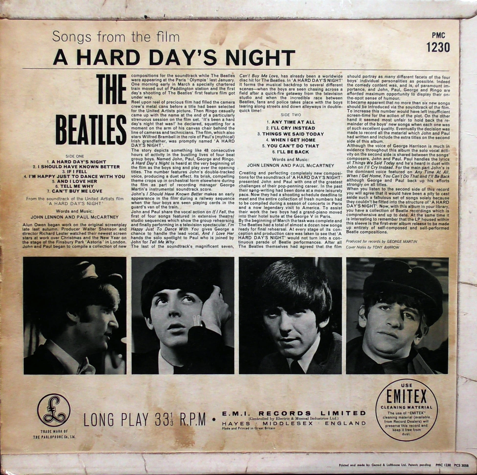 The Beatles – A Hard Day's Night Parlophone – PMC 1230 XEX 481 - 3N / XEX 482 - 3N