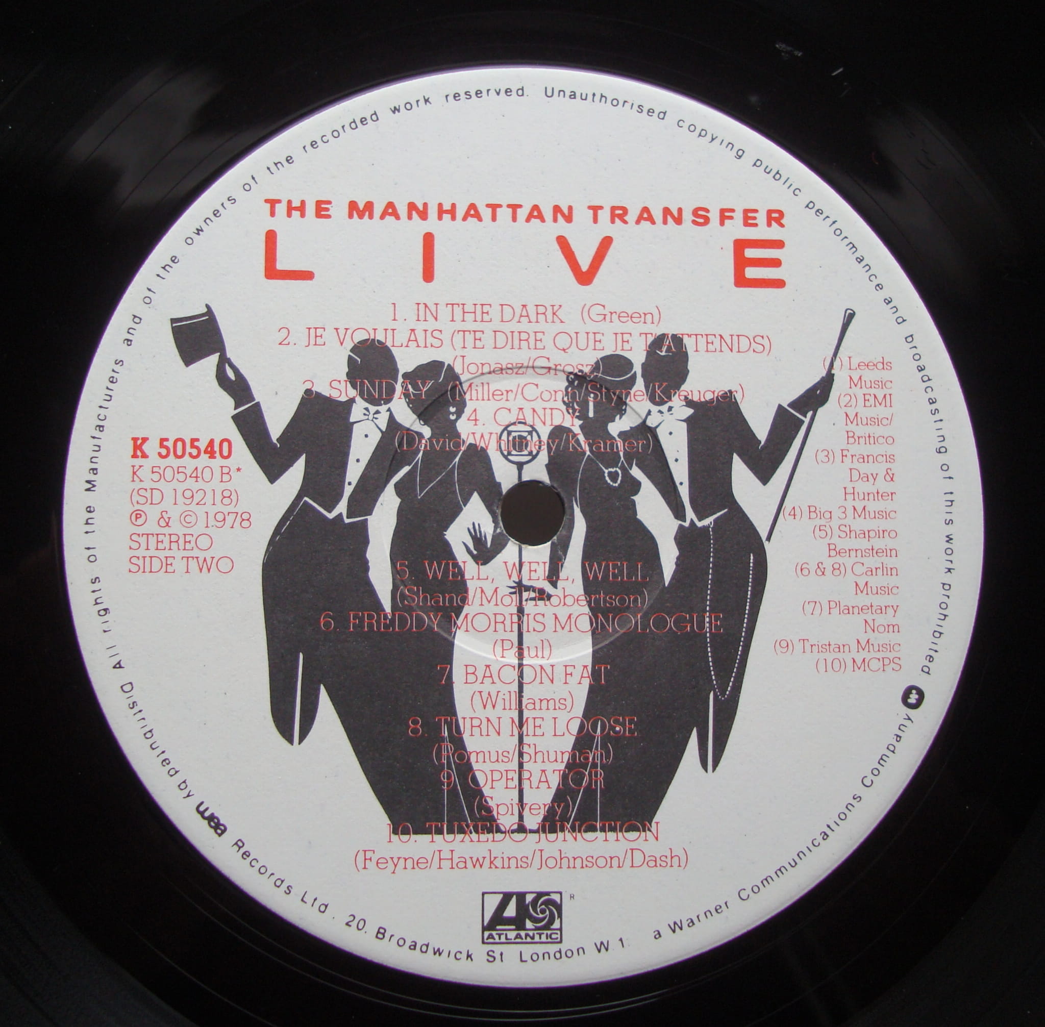 Side One 1 That Cat Is High 2 Snootie Little Cutie 3 Four Brothers 4 On A Little Street In Singapore 5 Java Jive 6 Walk In Love 7 Chanson D'Amour 8 Speak Up Mambo (Cuentame) 9 15 Minute Intermission Side Two 1 In The Dark 2 Je Voulais (Te Dire Que Je T'Attends) 3 Sunday 4 Candy 5 Well, Well, Well 6 Freddy Morris Monologue 7 Bacon Fat 8 Turn Me Loose 9 Operator 10 Tuxedo Junction