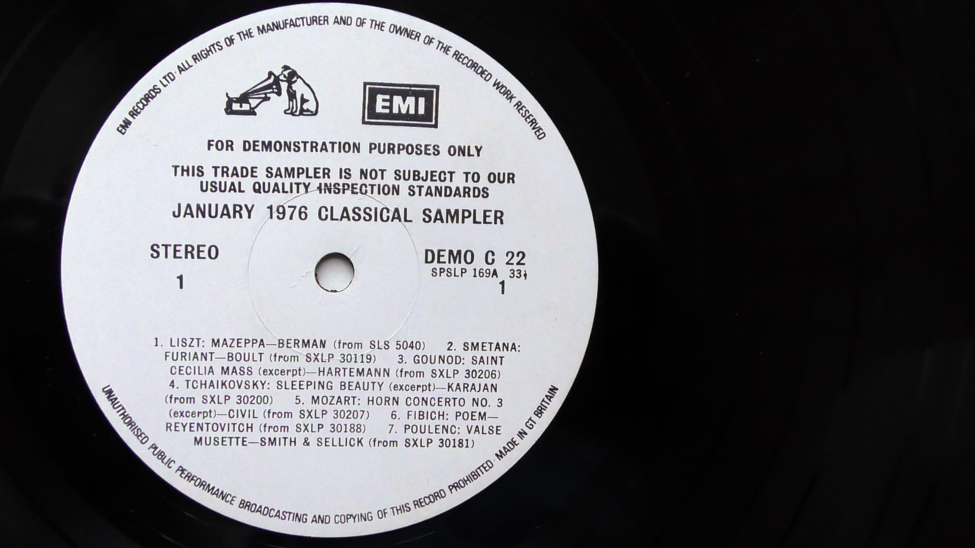 Various – January 1976 Classical Sampler His Master's Voice – DEMO C 22 LP, Promo