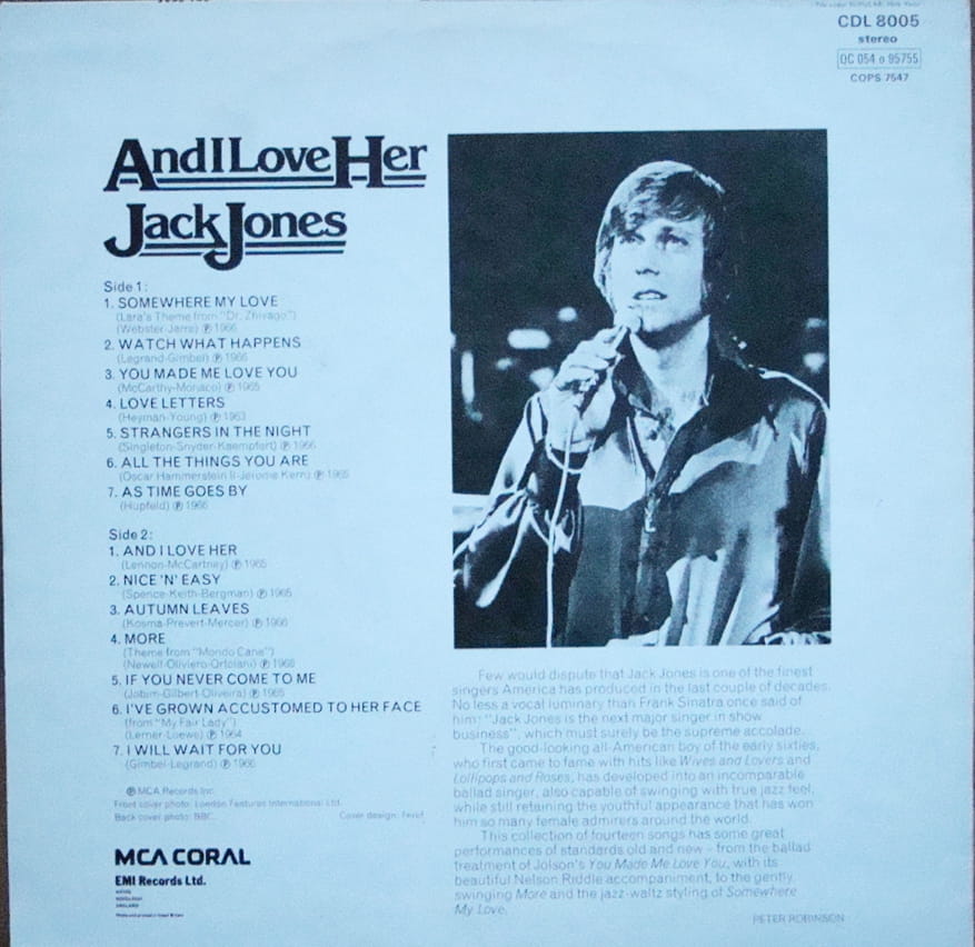 Jack Jones – And I Love Her CDL 8005 Stereo