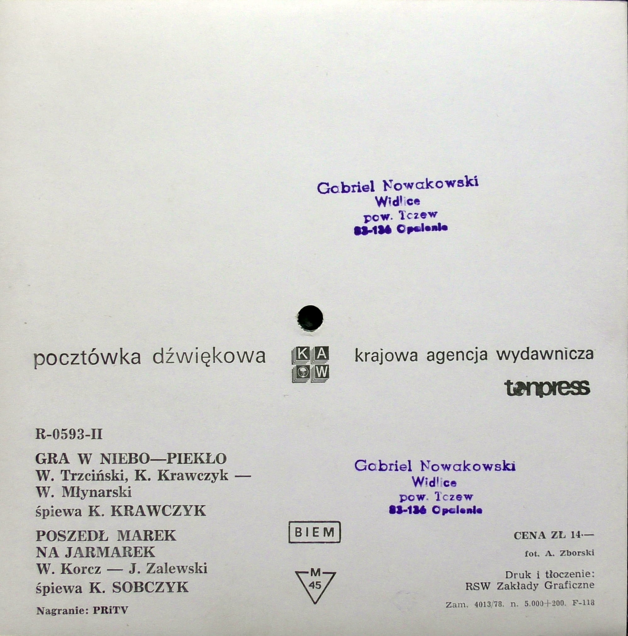 - Pressed By – RSW Zakłady Graficzne