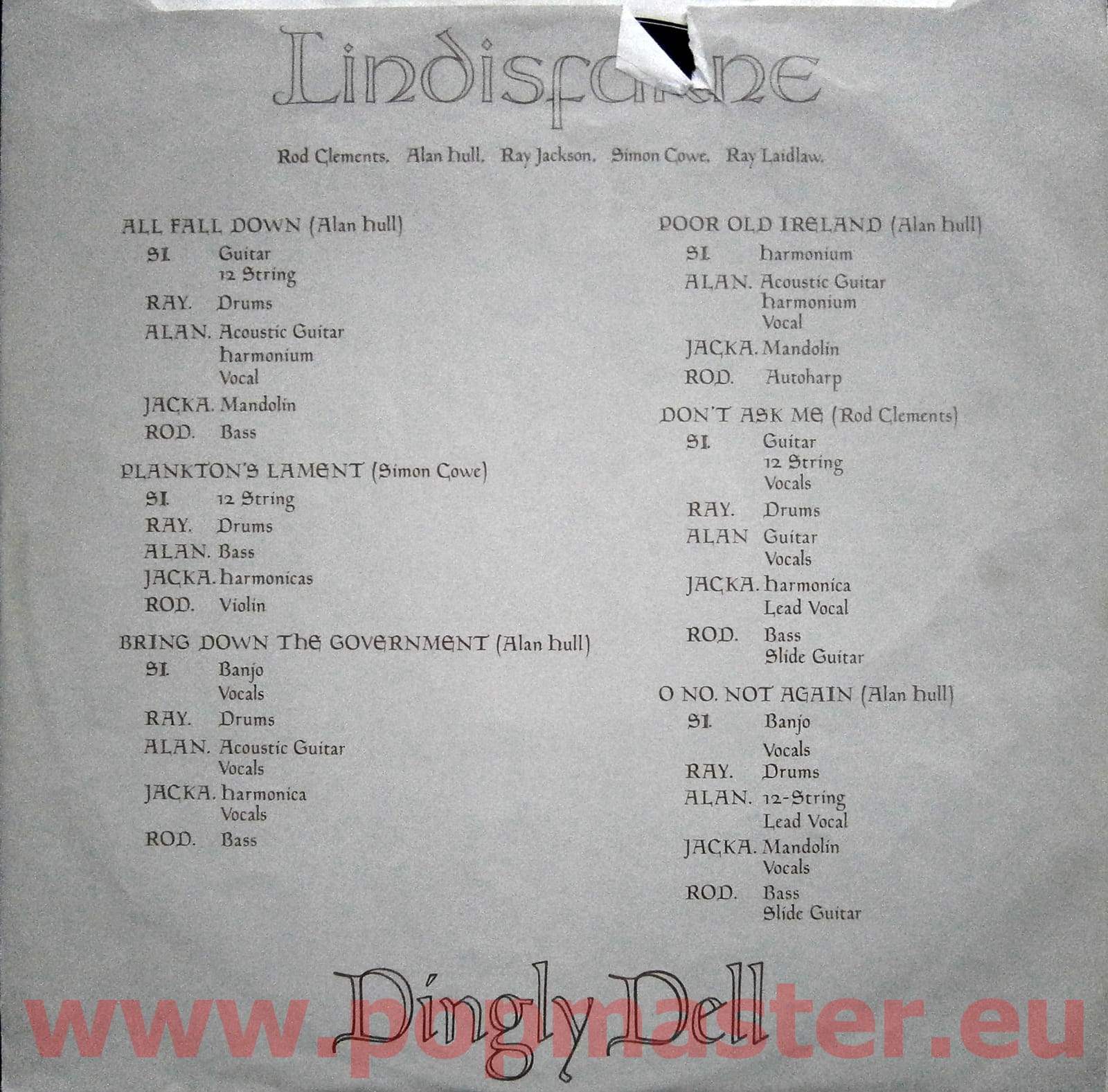LINDISFARNE DINGLY DELL CAS 1057 VINYL WINYL