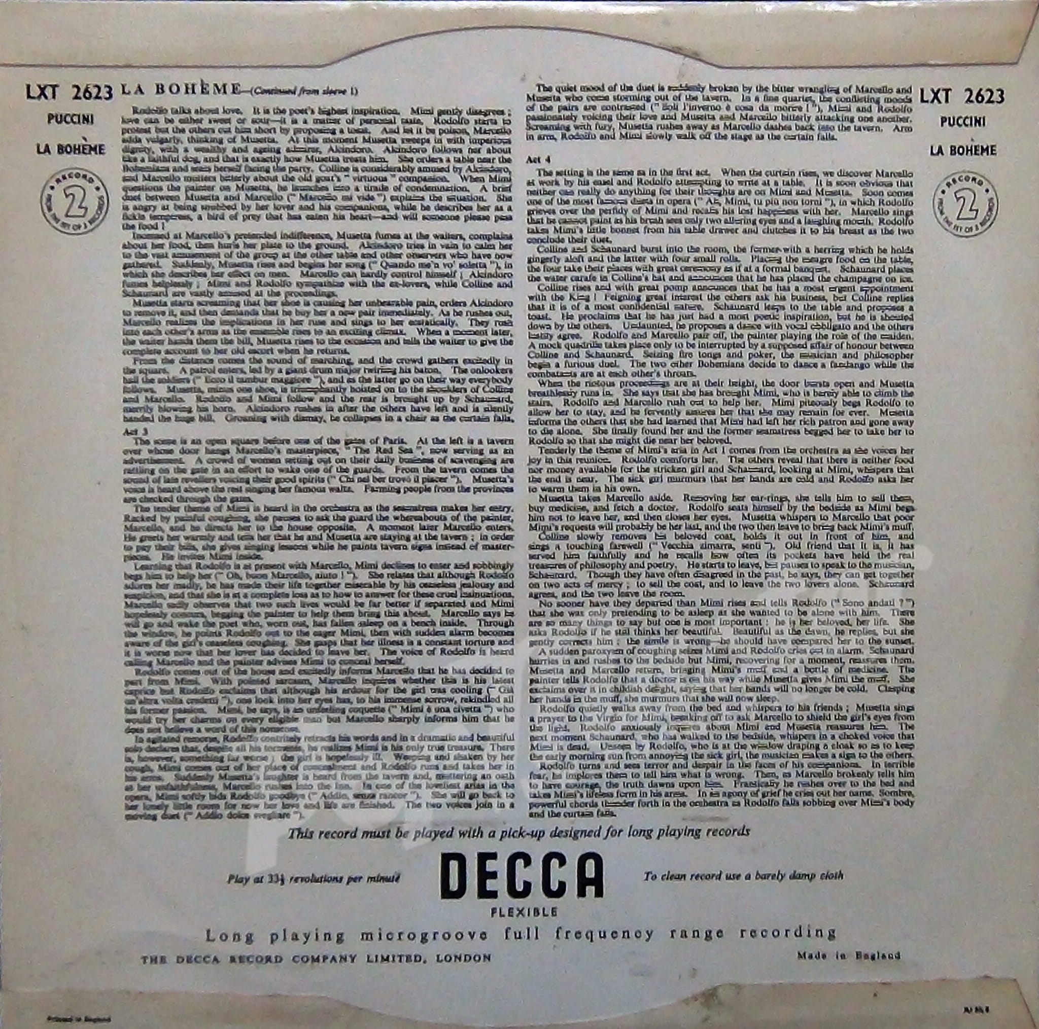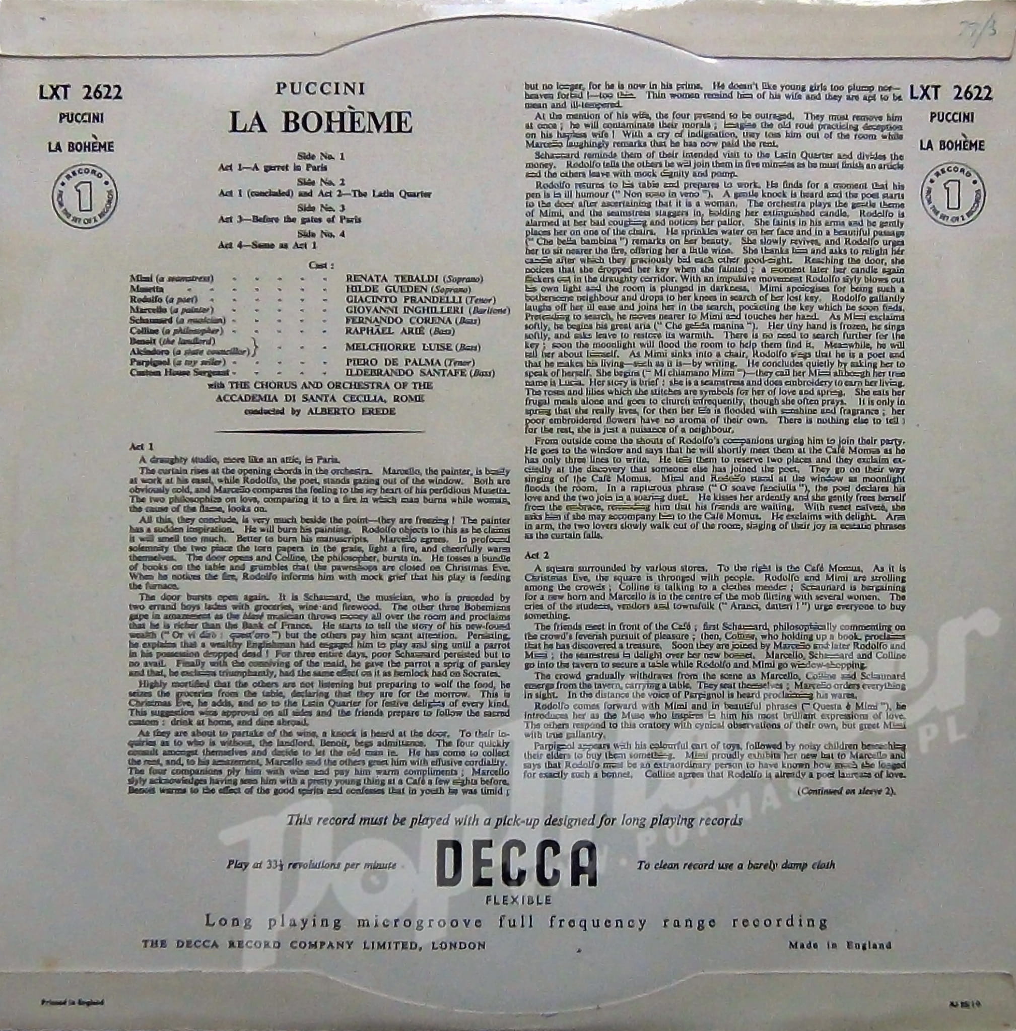 Puccini La Boheme Renata Tebaldi, Giacinto Prandelli, LXT 2622/LXT 2623
