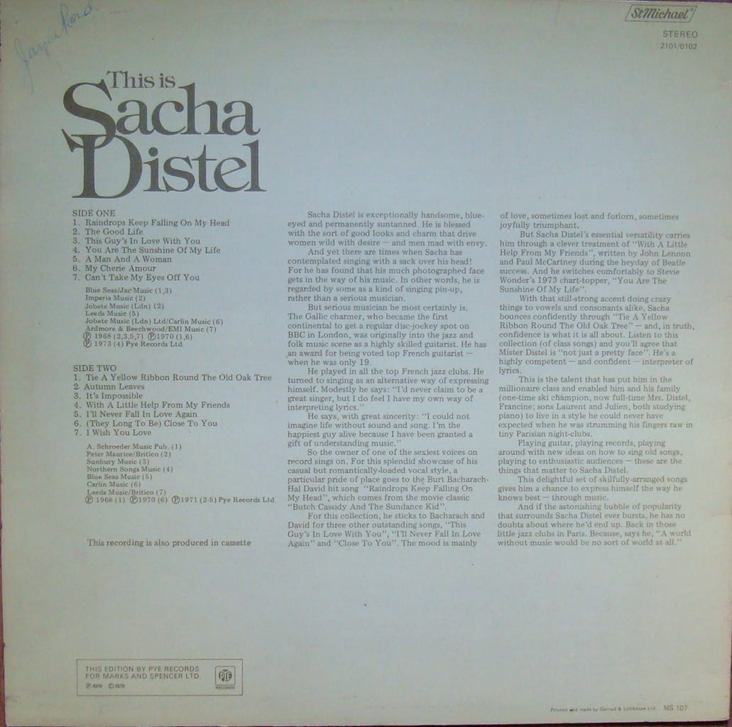 Sacha Distel - This Is Sacha Distel 2101/0102 Vinyl