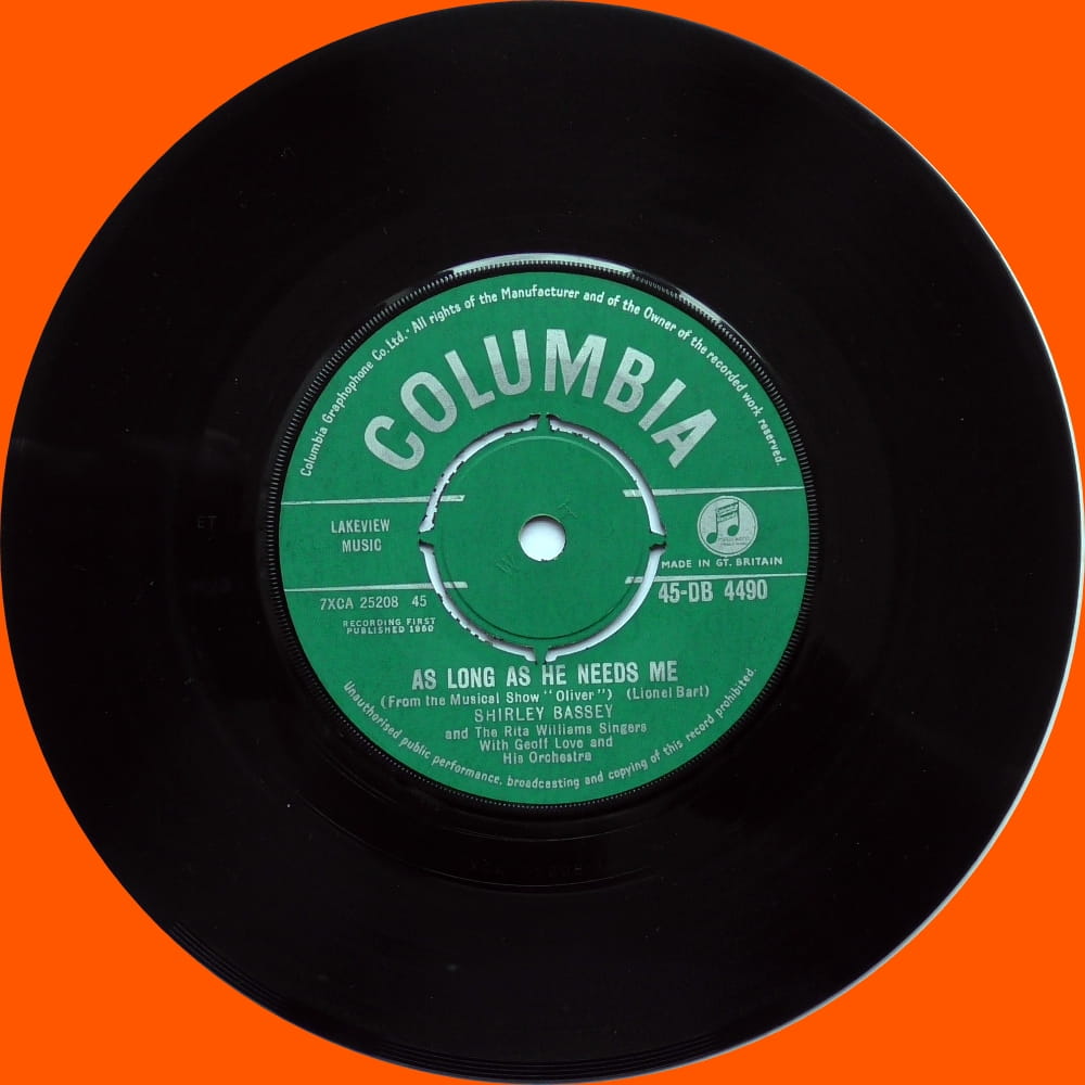 Shirley Bassey With The Rita Williams Singers And Geoff Love & His Orchestra – As Long As He Needs Me Columbia – 45-DB 4490