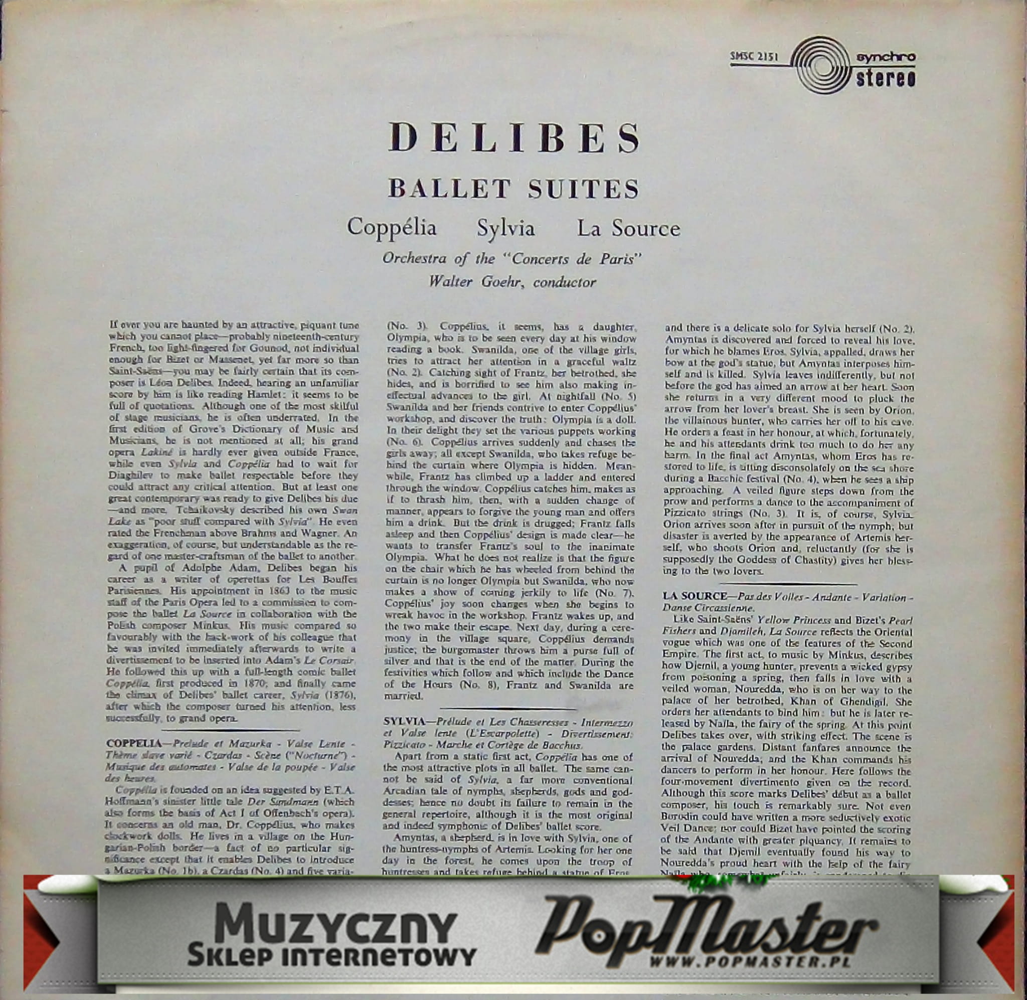 Walter Goehr Orchestra Of The Concerts De Paris Delibes Coppelia Sylvia La Source Ballet Music SMSC 2151