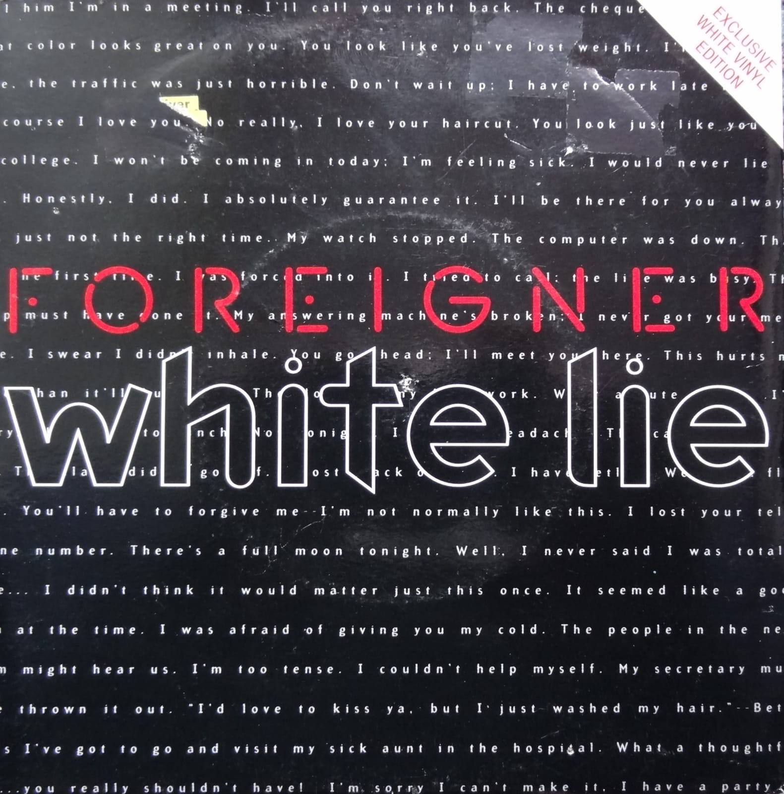 Foreigner – White Lie Arista – 74321233637 Vinyl, 7", 45 RPM, Single, White