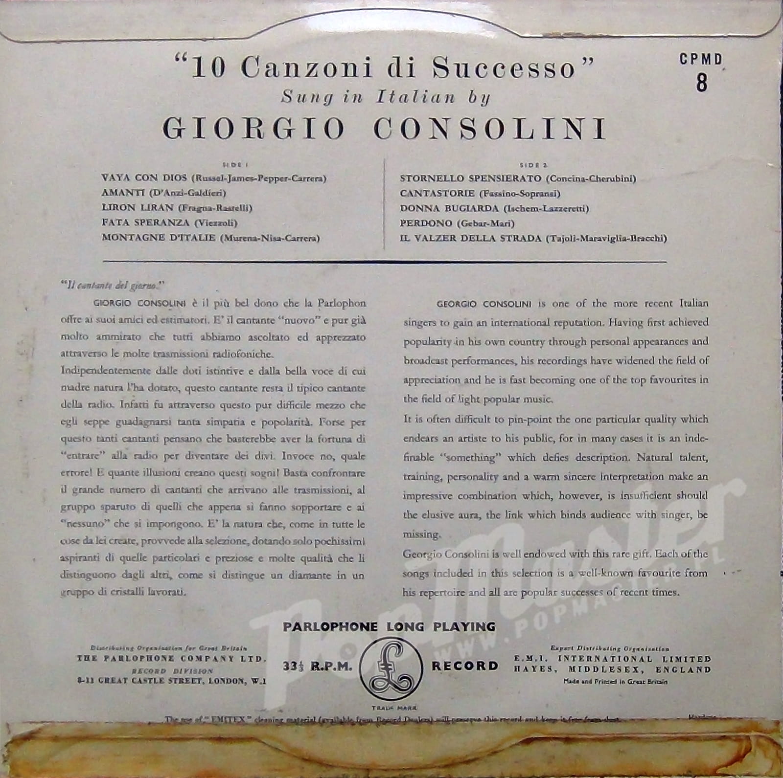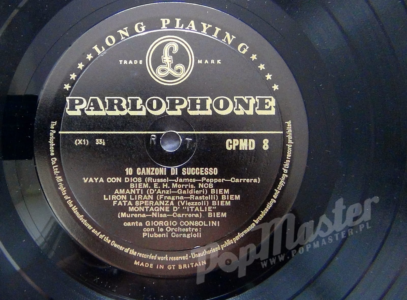 Giorgio Consolini 10 Canzoni Di Successo Parlophone CPMD 8 Plyta winylowa 10"