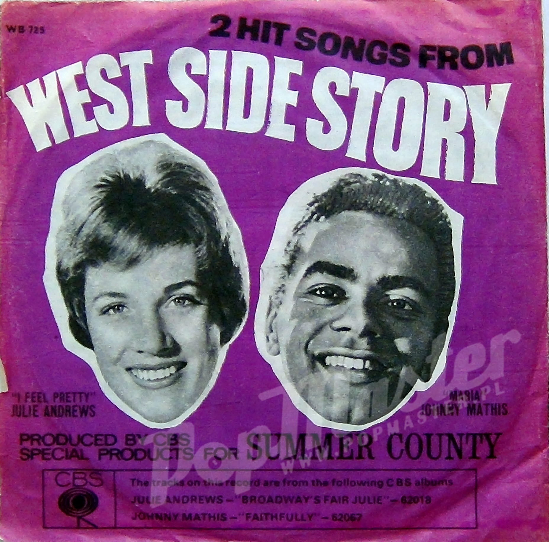 Julie Andrews Johnny Mathis 2 Hit Songs From West Side Story WB 725 Musical Winyl