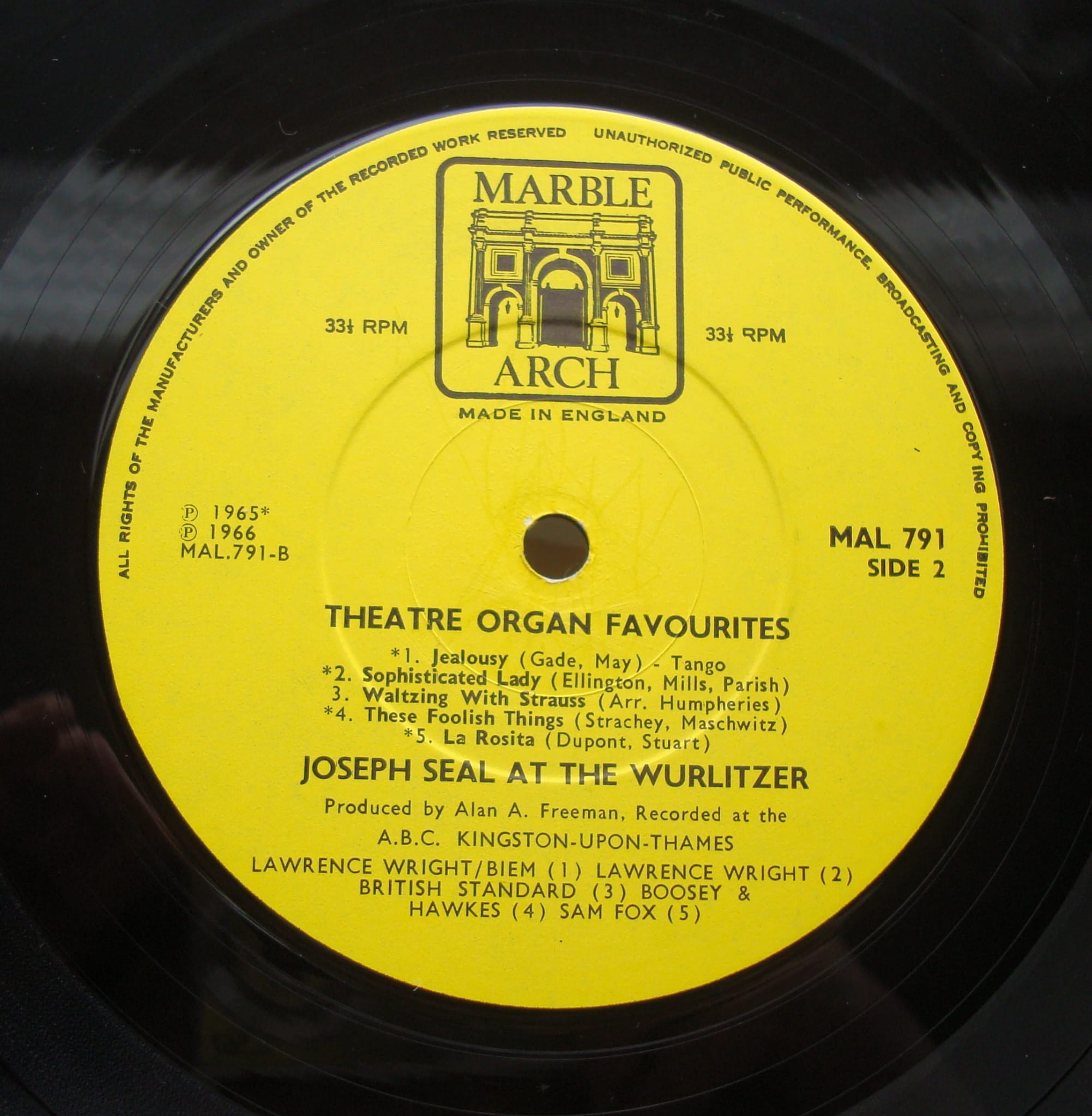 Joseph Seal – Theatre Organ Favourites MAL 791 Vinyl